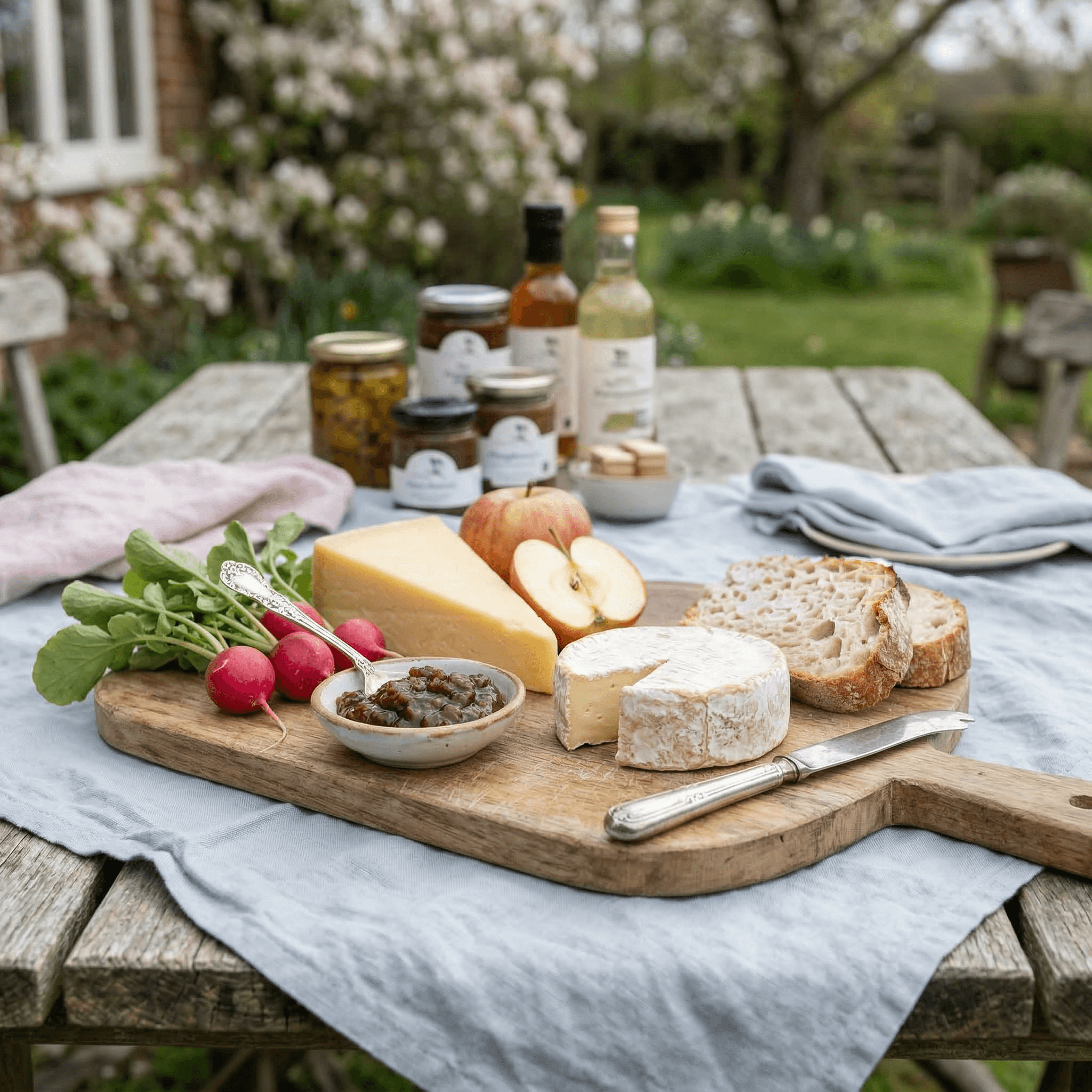 A fresh take on a British classic, celebrating the bold, tangy character of Ouse Valley Ploughman’s Pickle with seasonal cheeses and crisp spring produce.