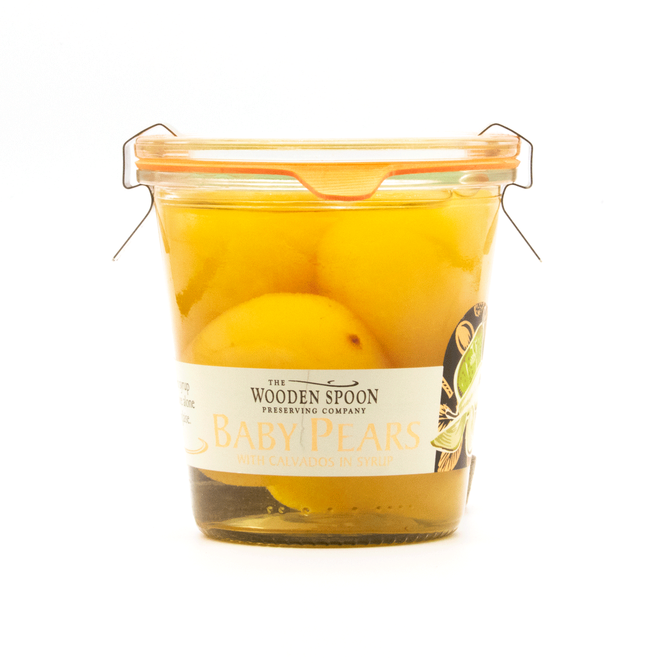 Tender baby pears infused with fine Calvados apple brandy for a gentle warmth and subtle orchard sweetness.