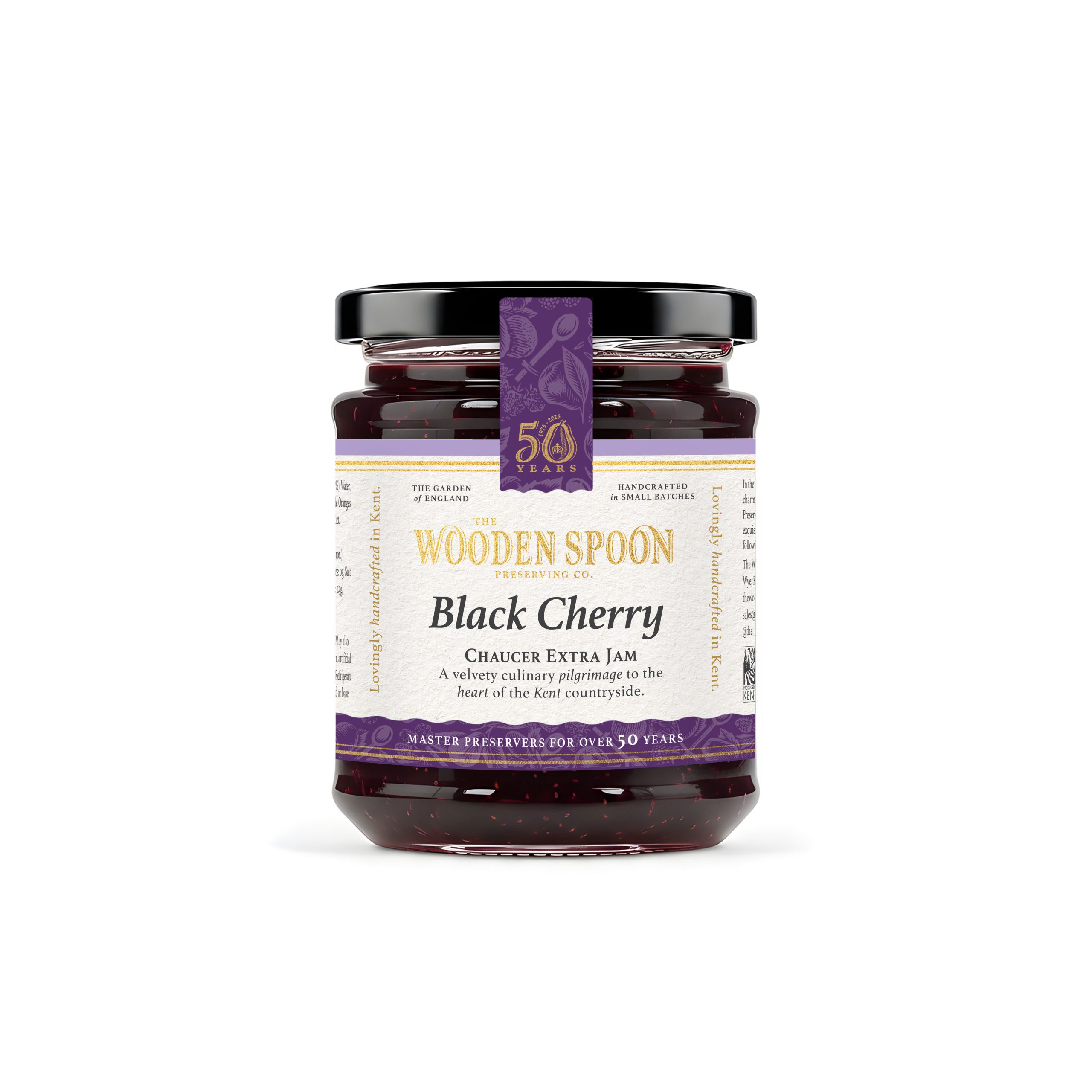 Named Chaucer in honour of our close neighbour Canterbury – immortalised in his Canterbury Tales – this 340g jar celebrates local heritage and literary tradition. Handmade in Kent, it captures the full-bodied taste of ripe black cherries.