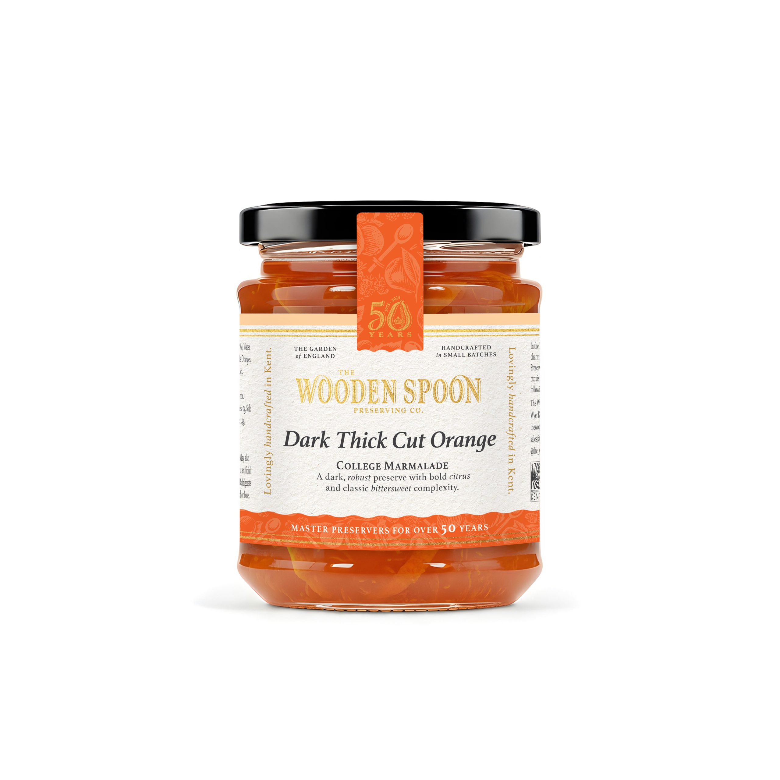 A robust dark marmalade with thick-cut Seville orange peel, boiled for longer to develop a rich, caramelised depth of flavour.