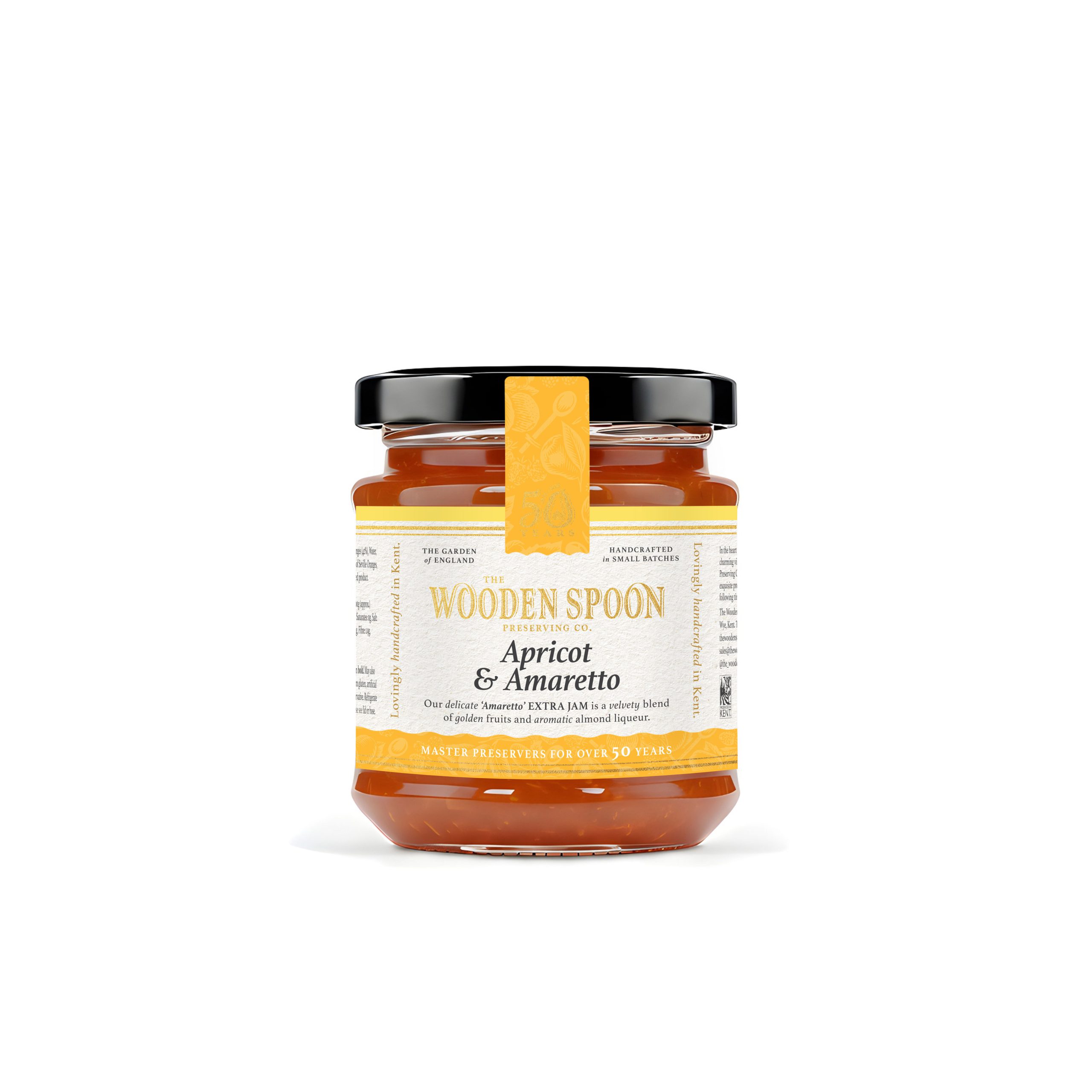 A luxurious extra jam pairing ripe apricots with a touch of Italian amaretto for a delicate, nutty sweetness.